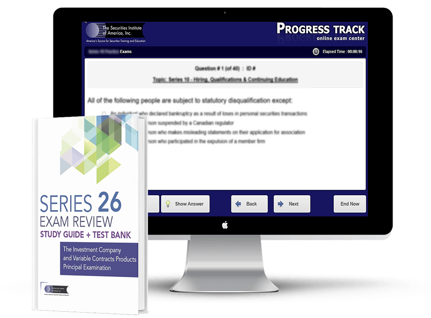 This best-in-class series 26 exam prep study guide details everything you need to know. Created to ensure your success on the series 26 exam. Written by the experts at The Securities Institute of America. This exam review guide will make you a master of all things tested on your series 26 exam. This textbook provides extraordinary detail covering all aspects of a broker dealer. It covers: