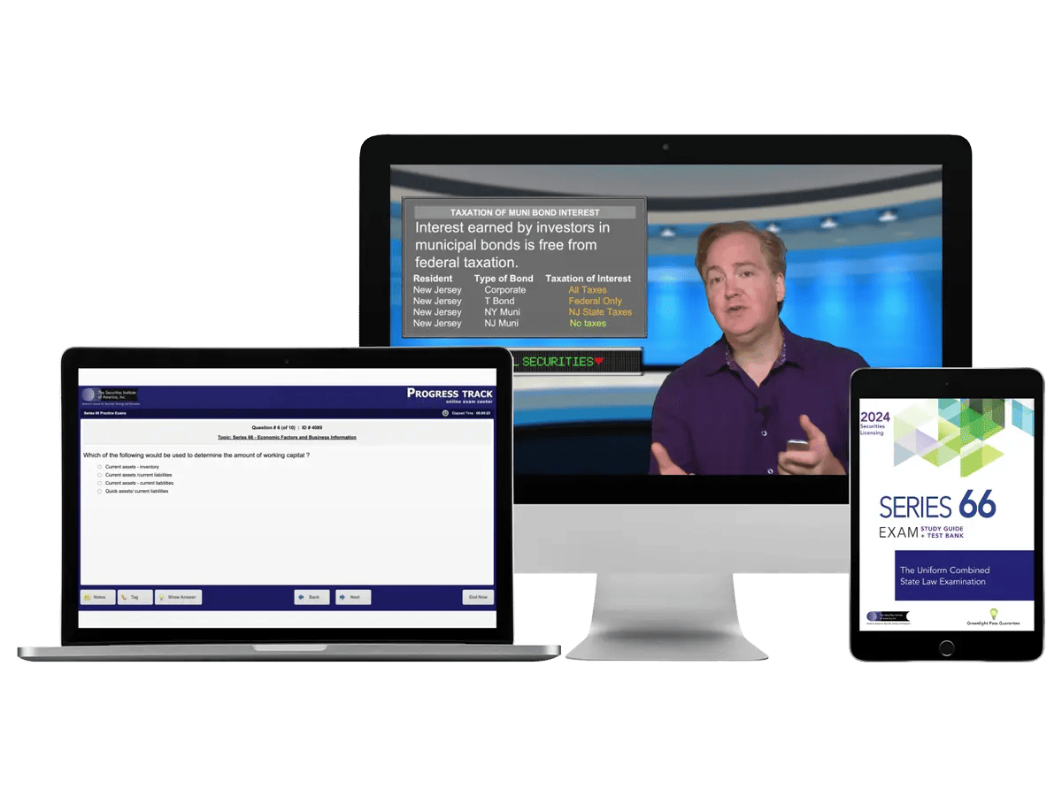 - 8 hours of television quality video covering all sections of the Series 66 exam