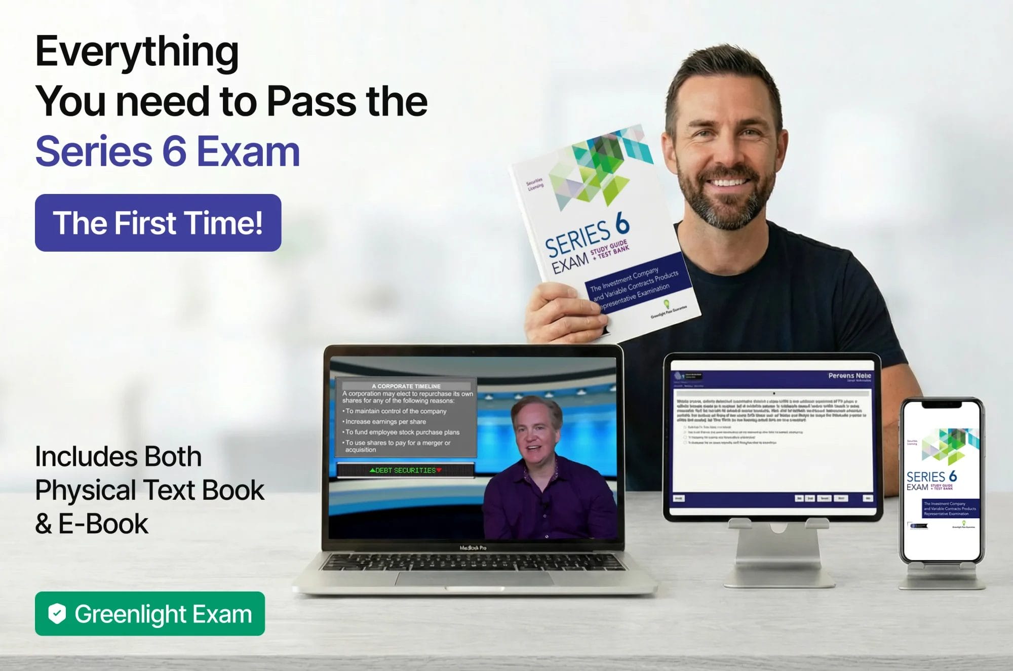 Our series 6 Exam Prep Course provides the knowledge you need to be successful. Our study materials have proven to be the ultimate guide for passing. Packed with Series 6 test tips, exam secrets and cheat sheets to get you ready for the actual test. Ace the FINRA Investment Company and Variable Contracts Representative Exam. Our best in class securities exam training course features: