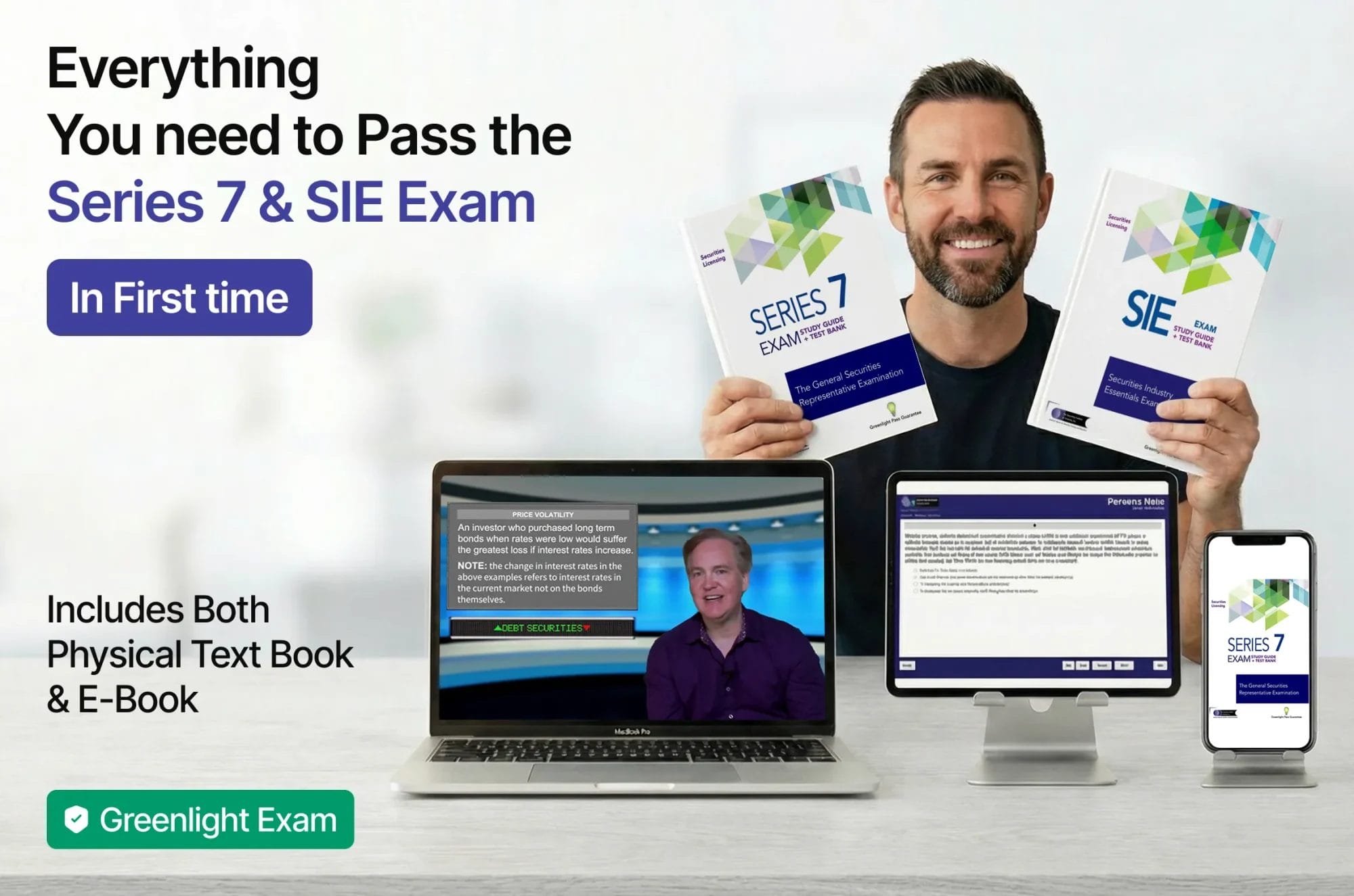 Prepare with the best SIE and Series 7 study materials to ensure you pass. Our SIE and Series 7 Exam Prep training package will make sure you are ready to Ace both exams. The highest pass rates in the industry and our money back GreenLight Guarantee ™.
